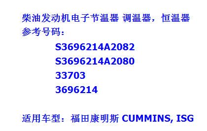 產品: 瀏覽次數:1242美系工程機械ISG柴油發動機電子節溫器 調溫器 恒溫器 3969214